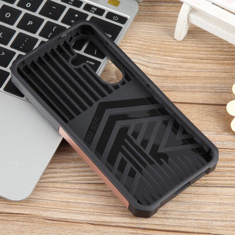 For Samsung Galaxy S25 5G Camera Shield Card Slot PC Hybrid TPU Phone Case(Rose Gold)
