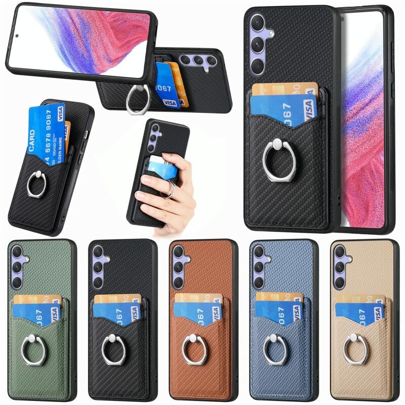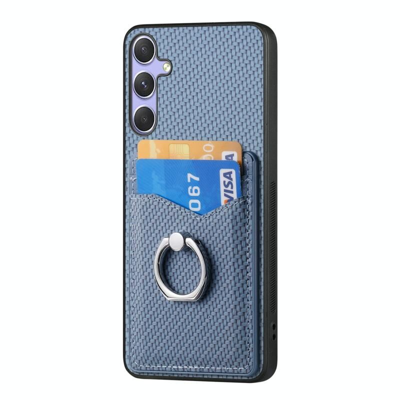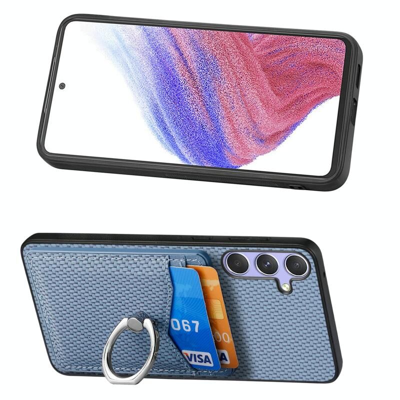 Για Samsung Galaxy S25 + 5G κάρτας ινών άνθρακα κάρτας πορτοφόλι δαχτυλίδι υπόθεση τηλεφώνου (Μπλε)