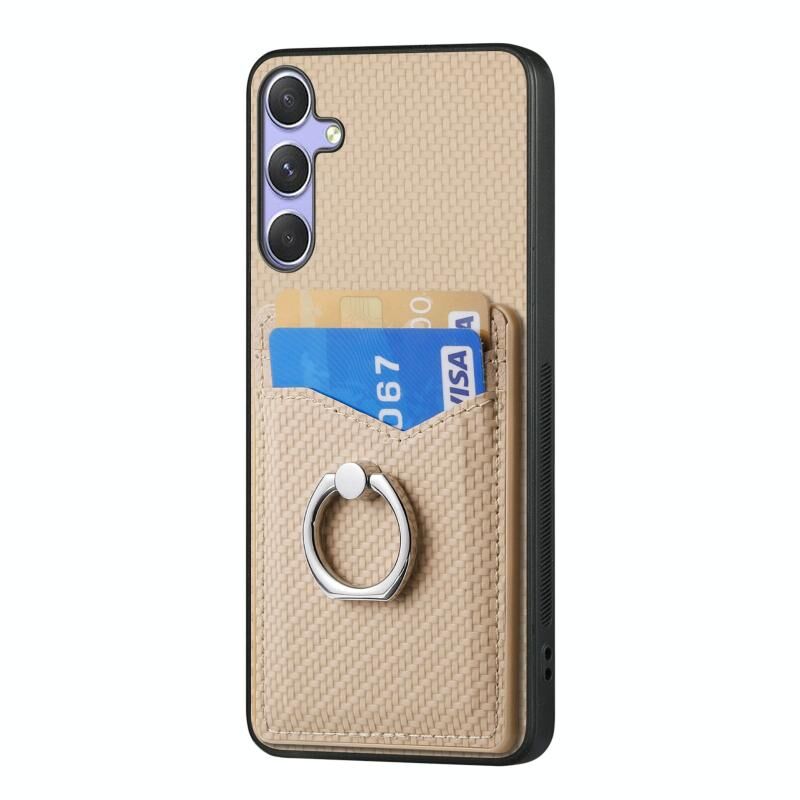 Για το Samsung Galaxy S25 5G 5G Carbon Fiber κάρτα πορτοφόλι δαχτυλίδι υπόθεση τηλεφώνου (χακί)