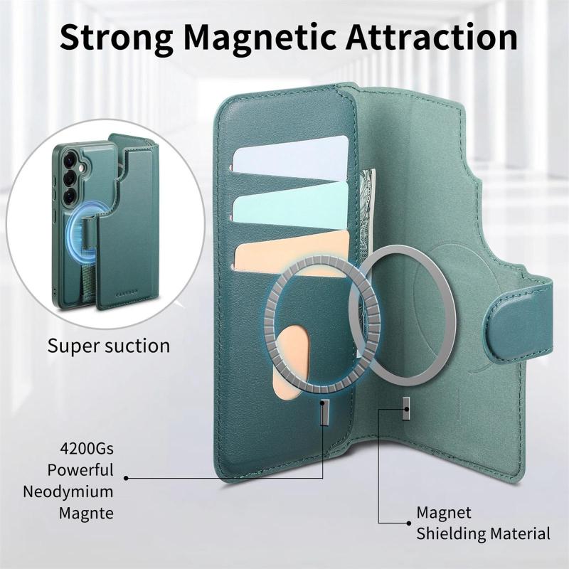 3. Detachable Design: The phone case is magnetically attached to the leather cover and can be easily removed for separate use.