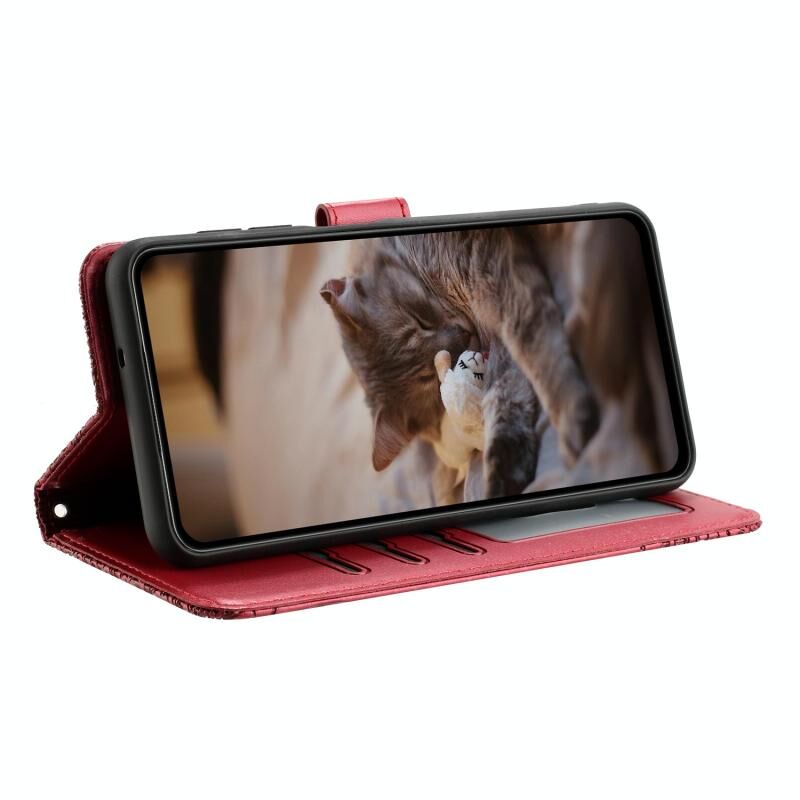 Για Samsung Galaxy S25 5G Cat ανάγλυφο μοτίβο δερμάτινη θήκη τηλεφώνου με κορδόνι (κόκκινο)