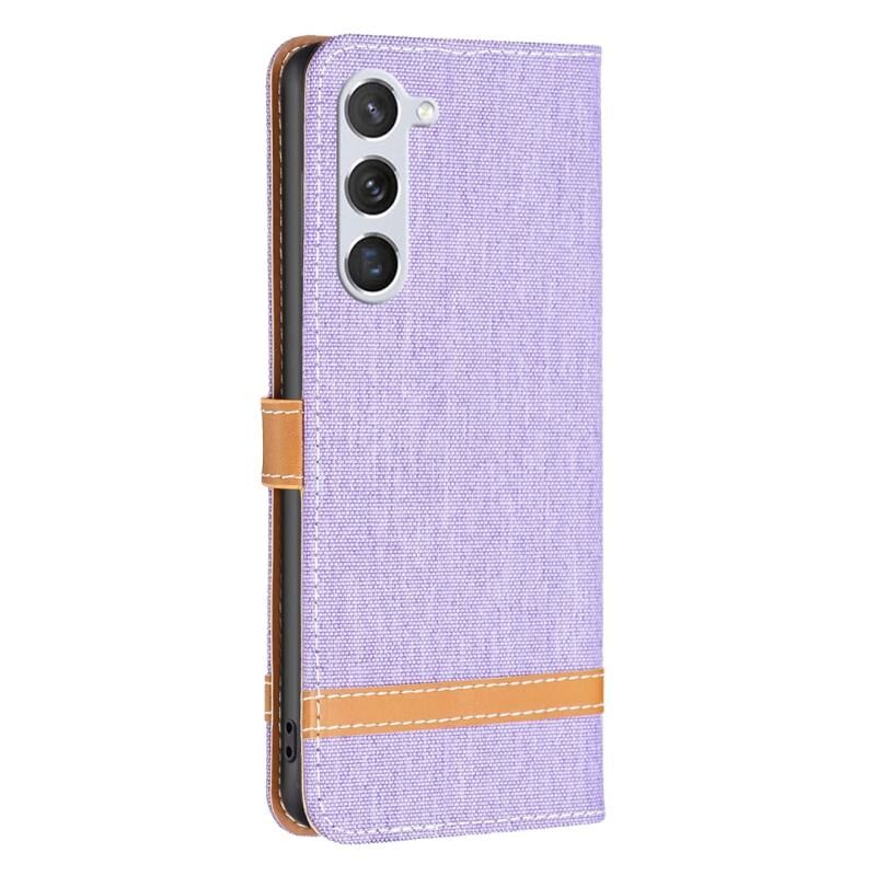 For Samsung Galaxy S25 5G Color Block Denim Texture Leather Phone Case(Purple)