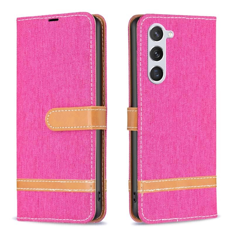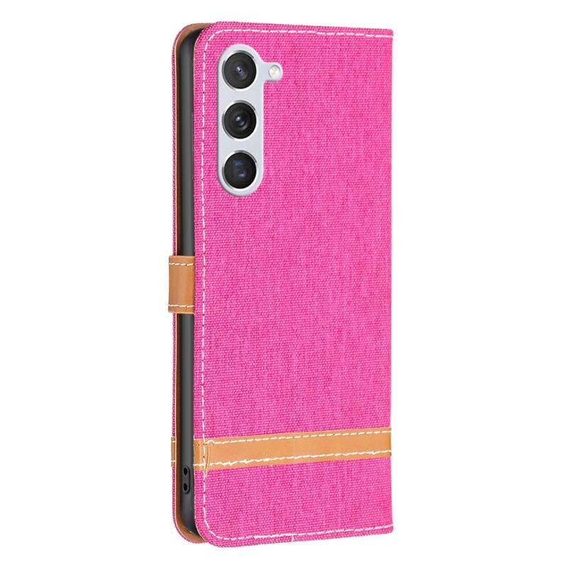 For Samsung Galaxy S25 5G Color Block Denim Texture Leather Phone Case(Rose Red)