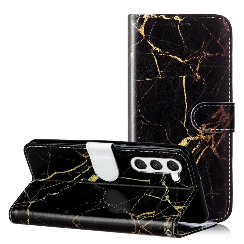 Θήκη τηλεφώνου δερμάτινη με σχέδιο μαρμάρου και χρώματα για Samsung Galaxy S25+ 5G (Μαύρο Χρυσό Μάρμαρο)