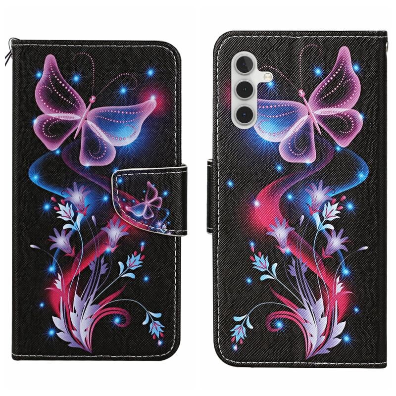 For Samsung Galaxy S25 5G Colored Drawing Pattern Leather Phone Case(Fluorescent Butterfly)