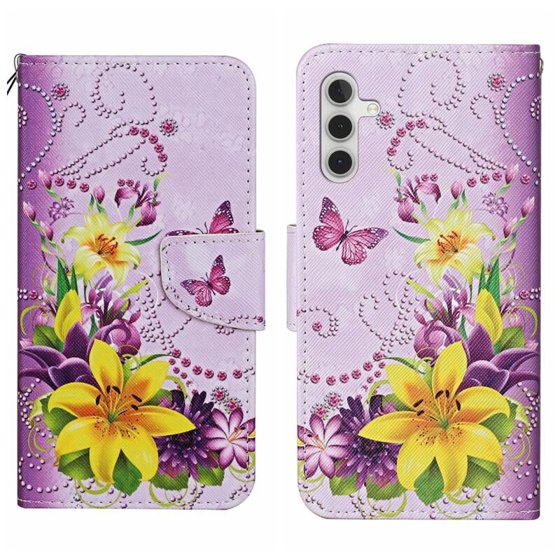 For Samsung Galaxy S25 5G Colored Drawing Pattern Leather Phone Case(Yellow Flower Butterfly)