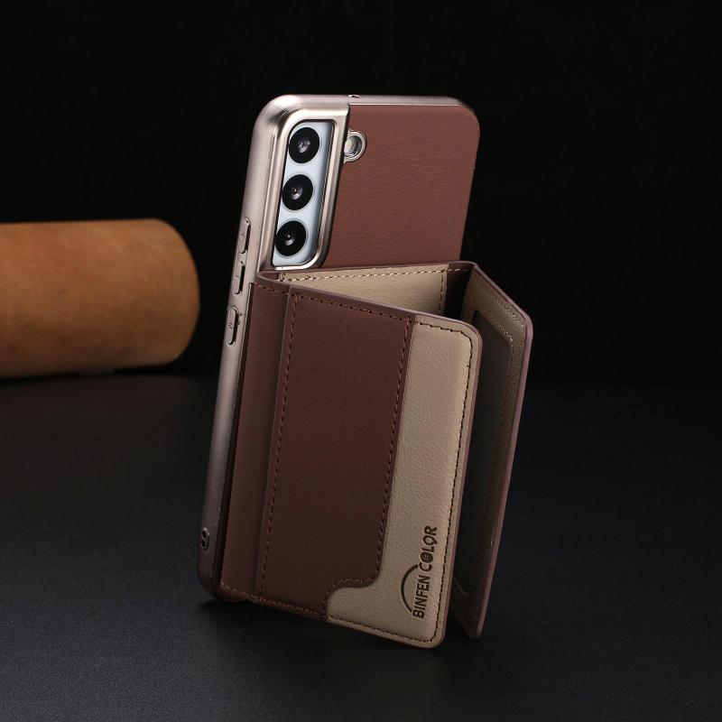 For Samsung Galaxy S25 5G Colour Matching Horizontal Magnetic Card Bag RFID MagSafe Phone Case(Brown)