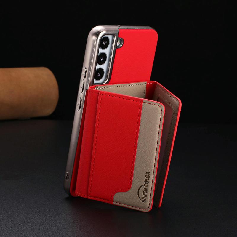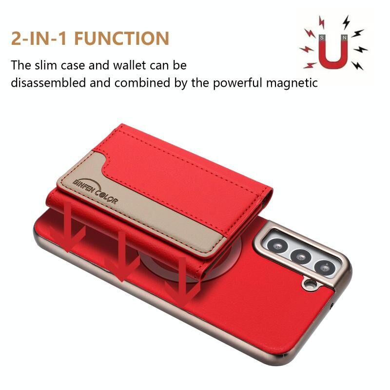 For Samsung Galaxy S25+ 5G Colour Matching Horizontal Magnetic Card Bag RFID MagSafe Phone Case(Red)