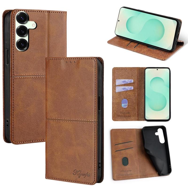 For Samsung Galaxy S25+ 5G Cow Texture Magnetic Leather Phone Case(Light Brown)