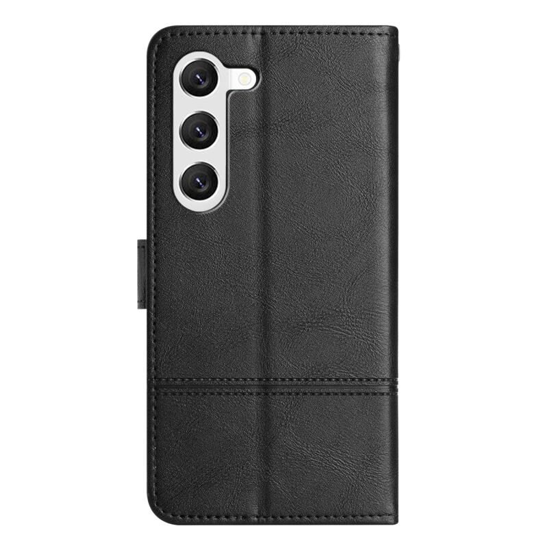Για Samsung Galaxy S25 5G 5G Cowhide υφή ραφή δέρμα τηλέφωνο υπόθεση (μαύρο)