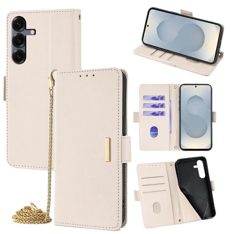 For Samsung Galaxy S25 5G Crossbody Chain Leather Phone Case(White)