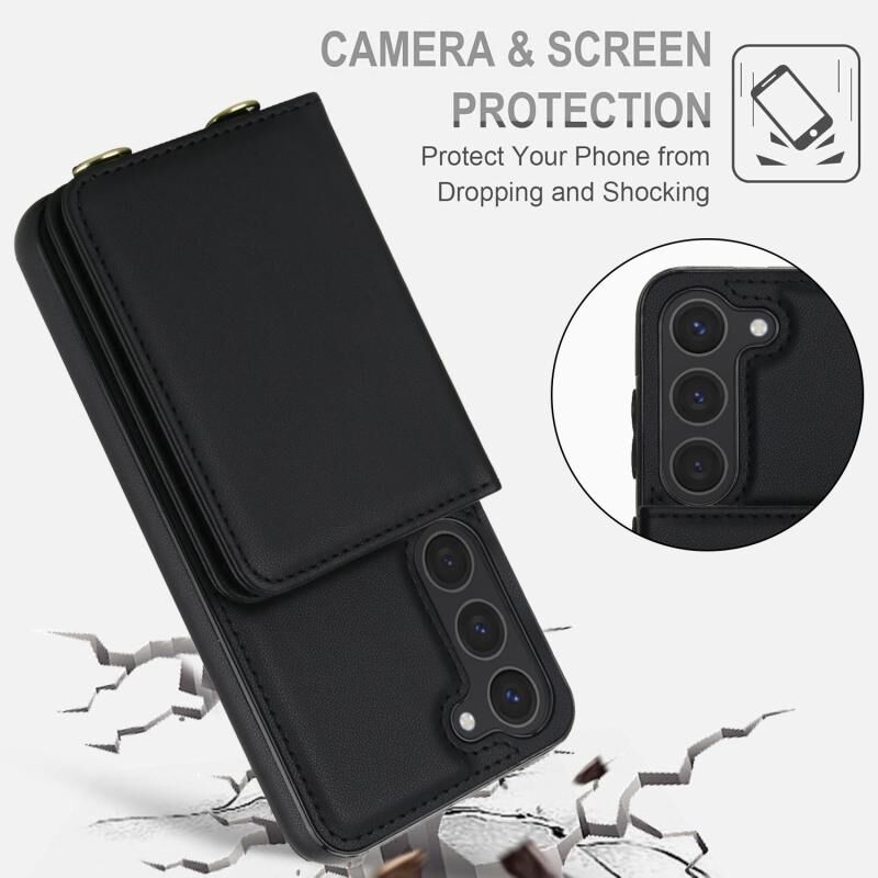 For Samsung Galaxy S25 5G Crossbody Dual-buckle Wallet RFID Back Leather Phone Case(Black)