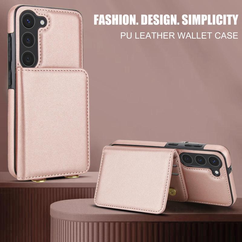 For Samsung Galaxy S25+ 5G Crossbody Dual-buckle Wallet RFID Back Leather Phone Case(Rose Gold)