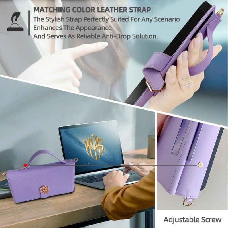 For Samsung Galaxy S25 5G Crossbody Handle Cross Texture Leather Phone Case(Purple)