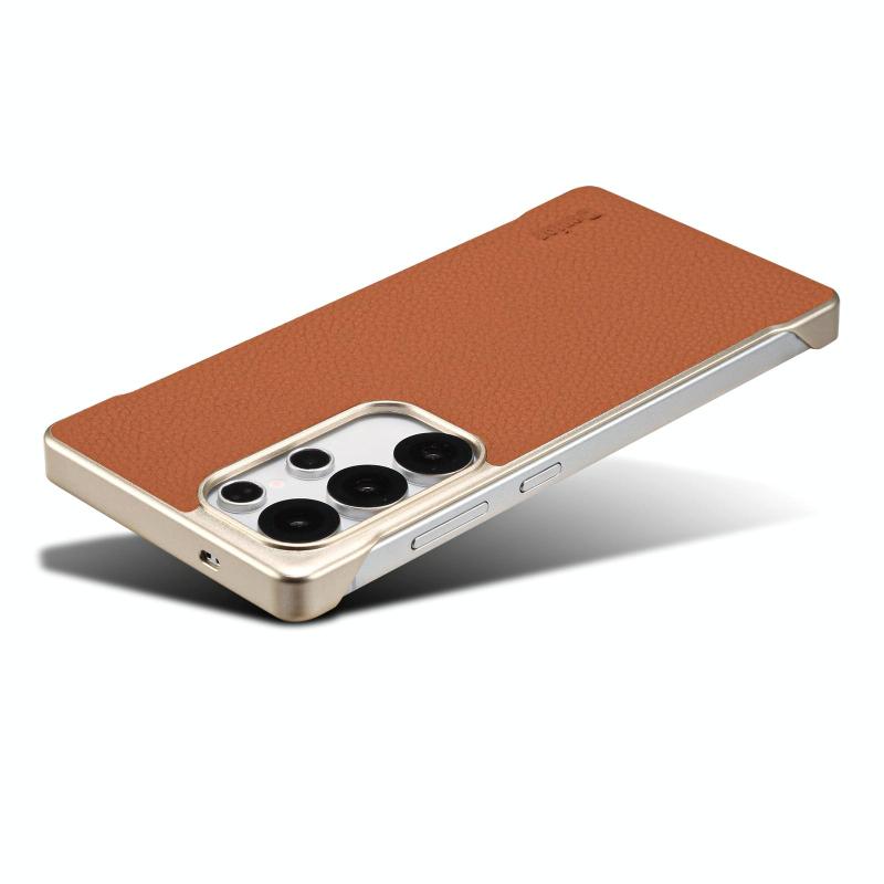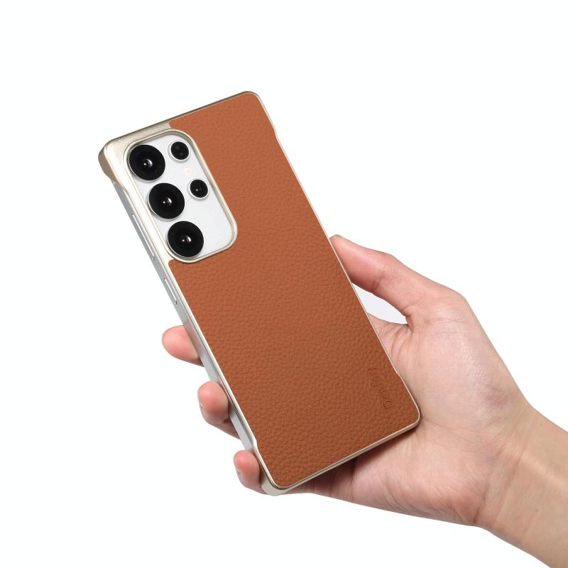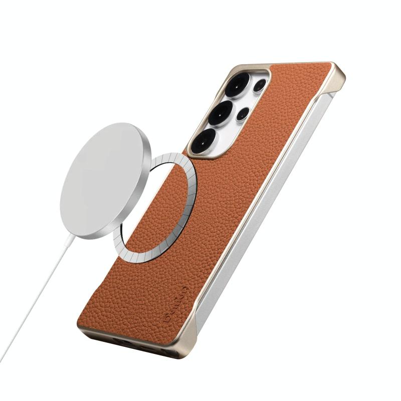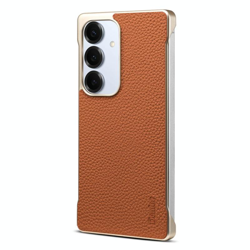 For Samsung Galaxy S25 5G Denior A20 Genuine Leather Litchi Texture MagSafe Frameless Phone Case(Brown) (Denior)
