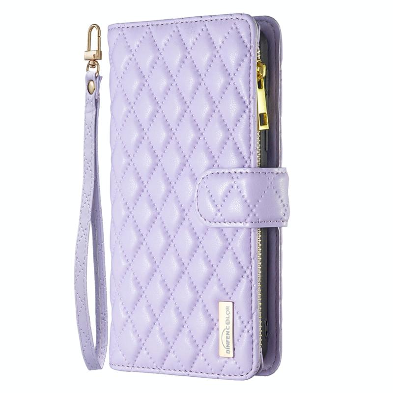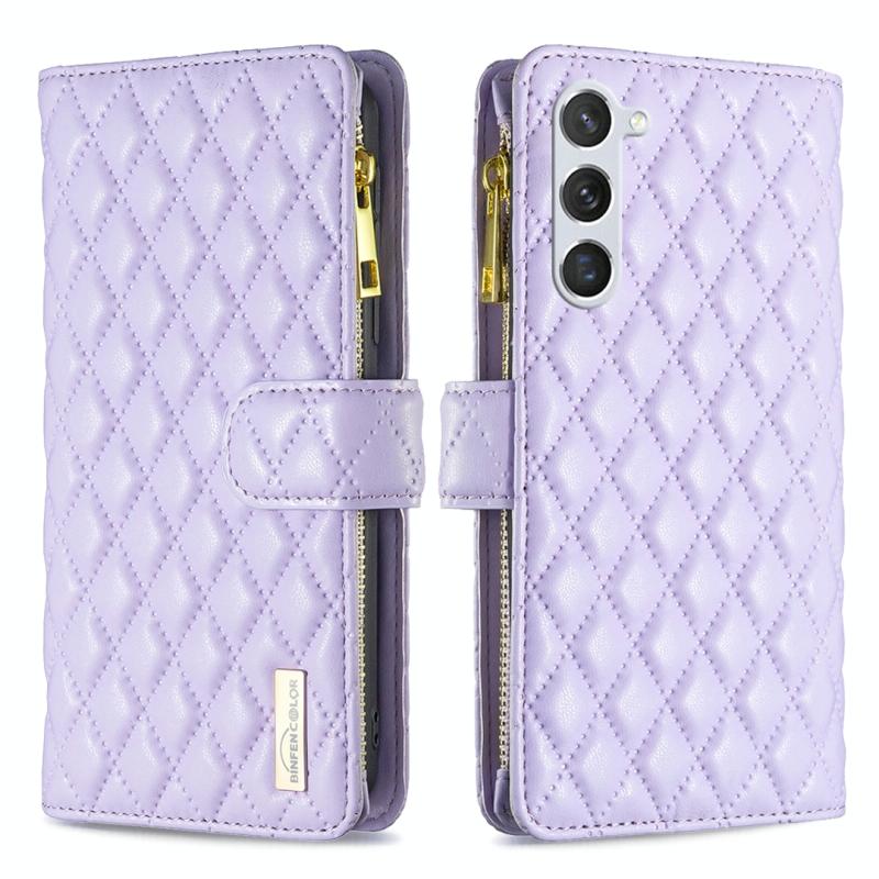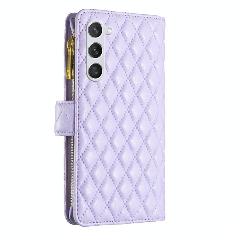 For Samsung Galaxy S25 5G Diamond Lattice Zipper Wallet Leather Flip Phone Case(Purple)