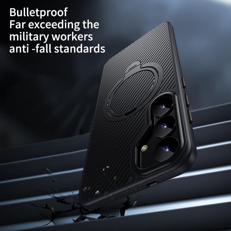 Θήκη τηλεφώνου από ανθρακονήματα με διπλό δακτύλιο MagSafe για Samsung Galaxy S25 5G (Μαύρο)