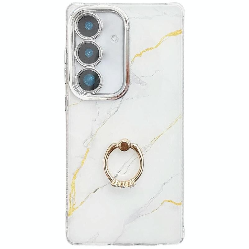 Θήκη τηλεφώνου με δακτύλιο για Samsung Galaxy S25 5G, επιμεταλλωμένη υφή μαρμάρου (Χρυσλό Λευκό S1)