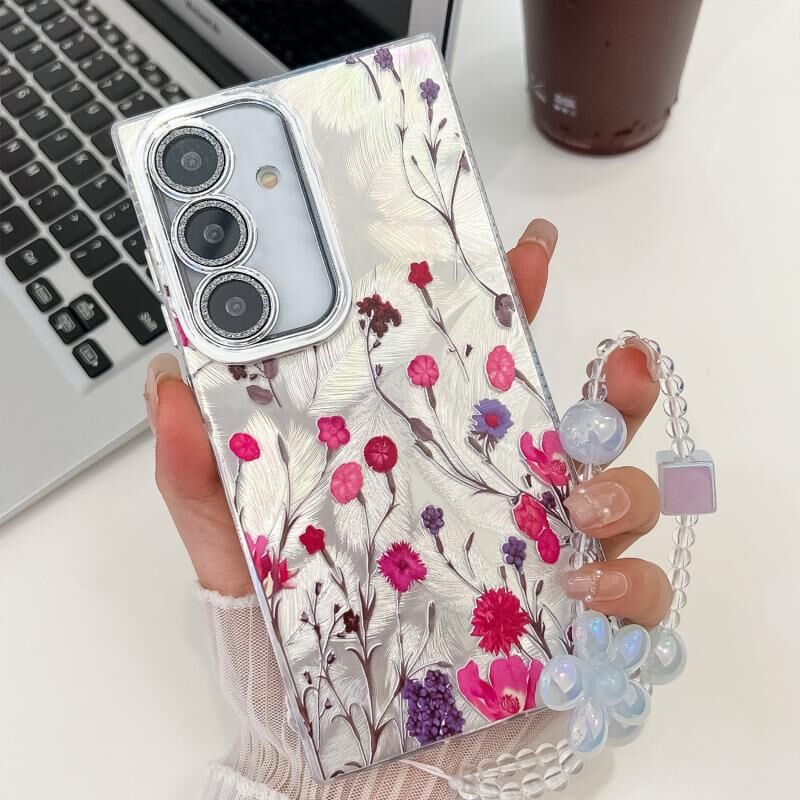Θήκη κινητού τηλεφώνου Samsung Galaxy S25 5G από TPU με σχέδιο ηλεκτρολυτικής επικάλυψης, λουλουδιών και φυτών, τύπου βραχιολάκι (Γαρύφαλλο FL7)
