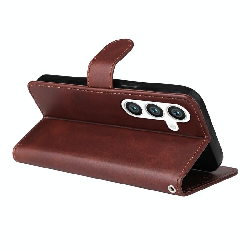 Θήκη κινητού τηλεφώνου Samsung Galaxy S25 5G ENKAY με κάρτες, δέρμα μοσχαριού με υφή και προστατευτική μεμβράνη οθόνης (Μαύρο) (ENKAY)