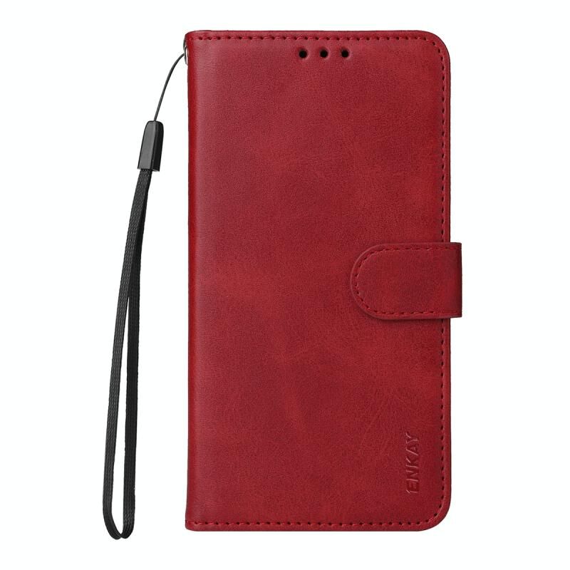 Θήκη κινητού τηλεφώνου Samsung Galaxy S25+ 5G ENKAY με κάρτες, δέρμα μοσχαριού με υφή και προστατευτική μεμβράνη οθόνης (Ροζ) (ENKAY)
