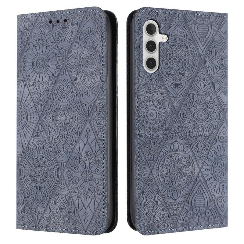 For Samsung Galaxy S25 5G Ethnic Embossed Adsorption Leather Phone Case(Grey)
