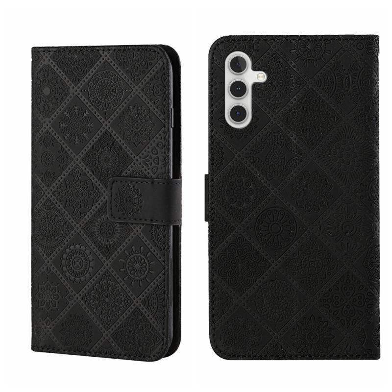 Θήκη τηλεφώνου Samsung Galaxy S25 5G από δέρμα με ανάγλυφο σχέδιο εθνοτικού στυλ (Καφέ)