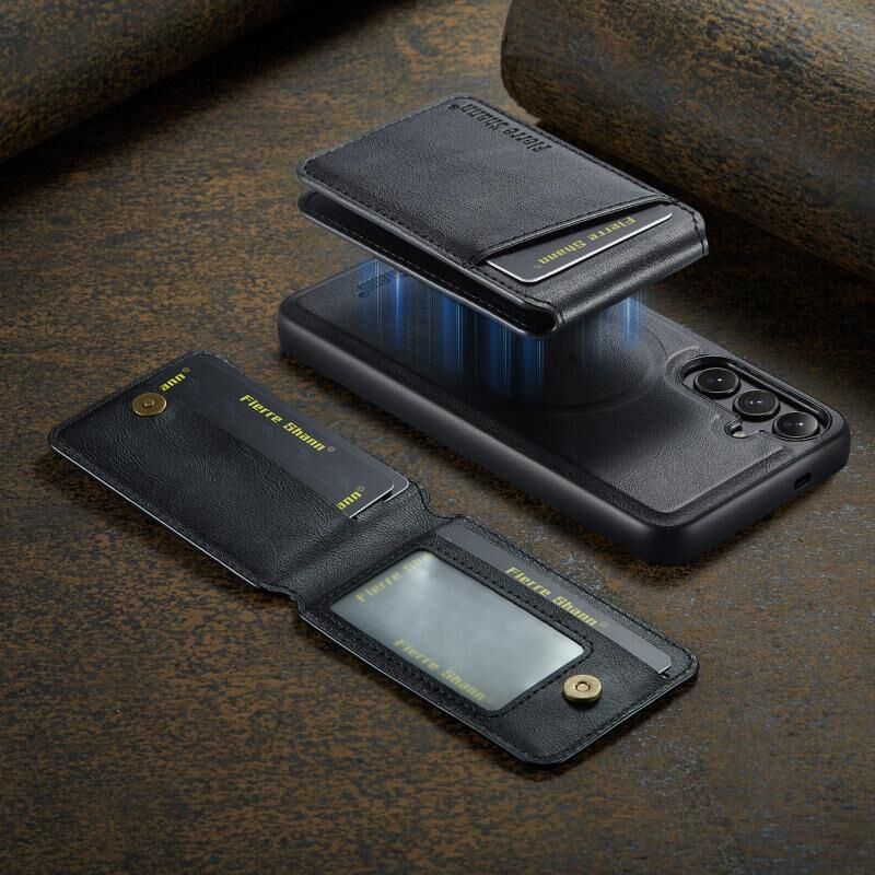 Θήκη τηλεφώνου με κάθετη αναδίπλωση, μαγνητική βάση καρτών, από δέρμα αγελάδας Fierre Shann για Samsung Galaxy S25+ 5G (Μαύρο) (FIERRE SHANN)