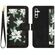 For Samsung Galaxy S25 5G Floral Pattern Leather Phone Case with Lanyard(Black)