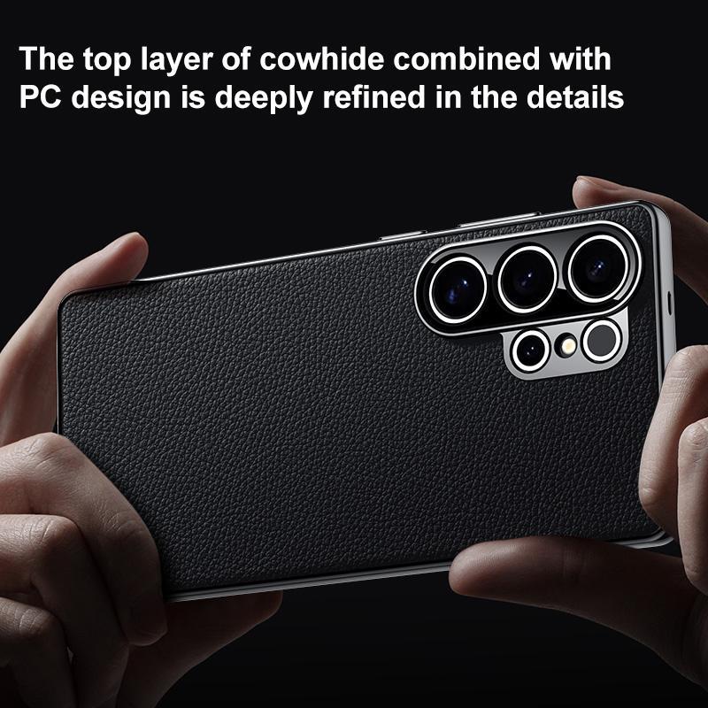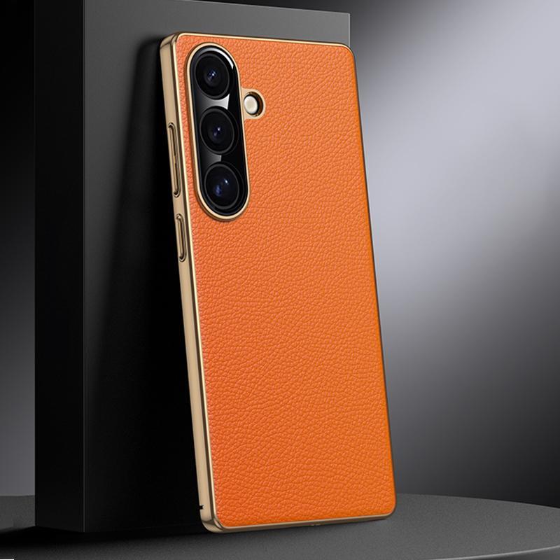 Για Samsung Galaxy S25 5G Αυθεντική Δερμάτινη Θήκη PC (Πορτοκαλί)