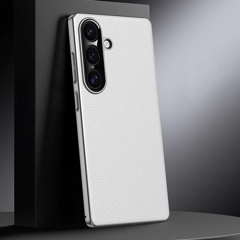 Για Samsung Galaxy S25 5G Αυθεντική Δερμάτινη Θήκη PC (Λευκό)