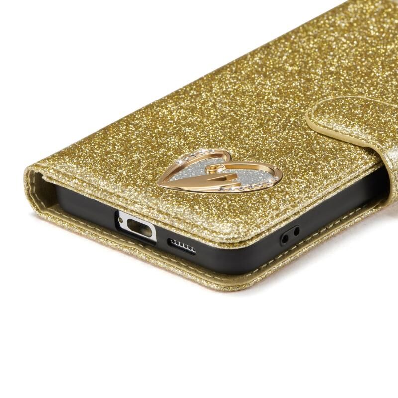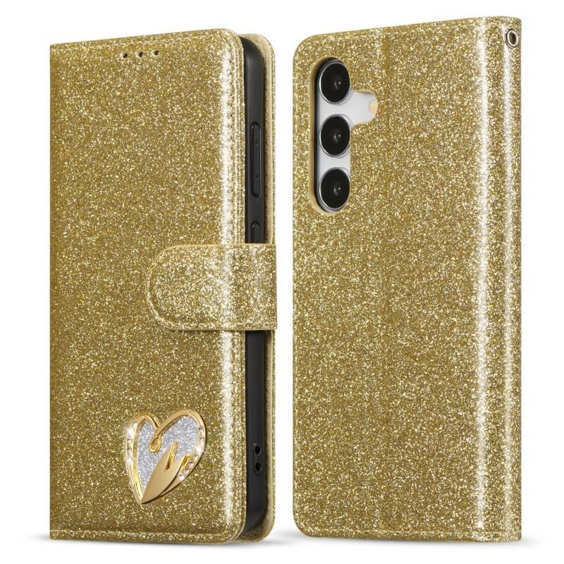 Για Samsung Galaxy S25 5G Glitter Powder Love δερμάτινη θήκη τηλεφώνου (χρυσό)