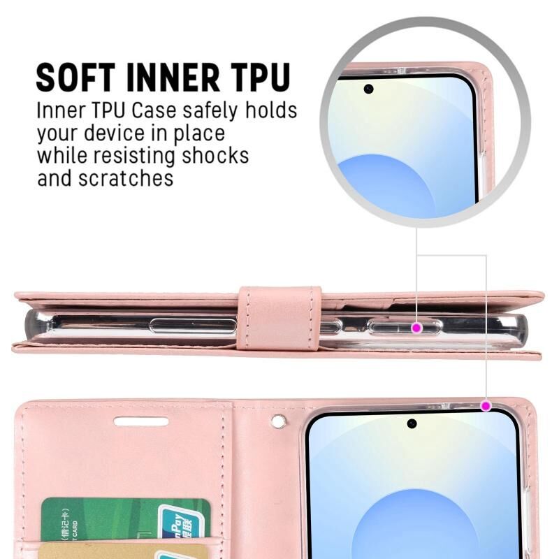 Για Samsung Galaxy S25+ 5G GOOSPERY BLUE MOON Crazy Horse Texture Δερμάτινη θήκη τηλεφώνου (Rose Gold) (Ροζ χρυσός)