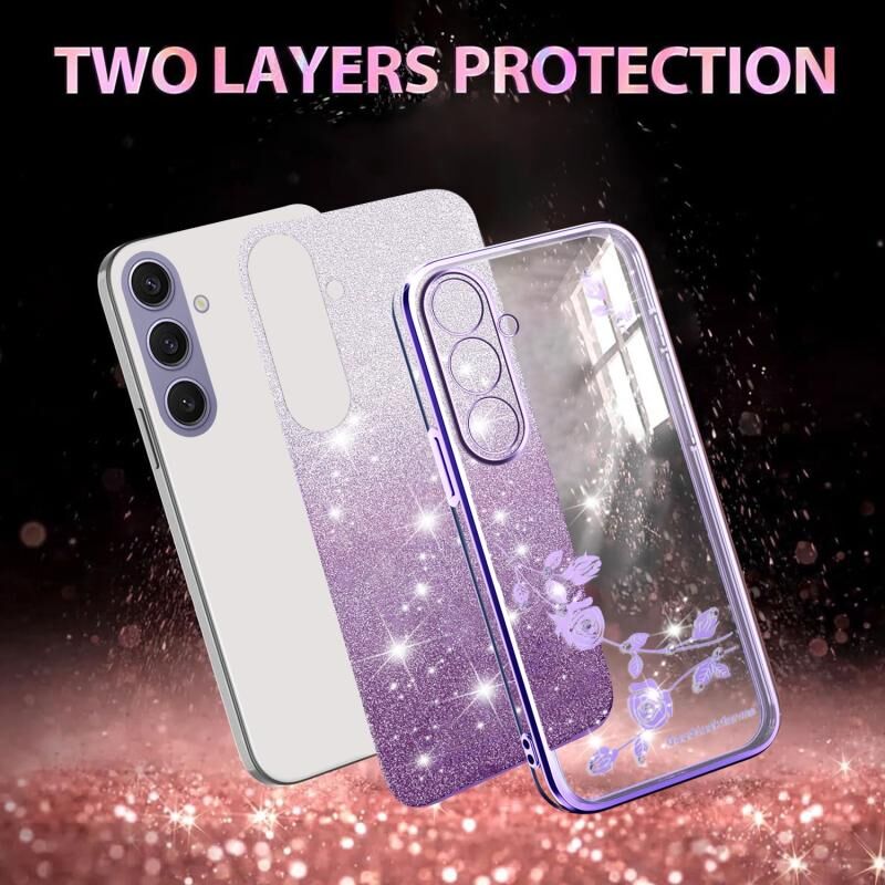 Θήκη κινητού τηλεφώνου για Samsung Galaxy S25+ 5G, με διαβαθμισμένη λάμψη, λουλούδια και πλήρη κάλυψη (Μωβ)