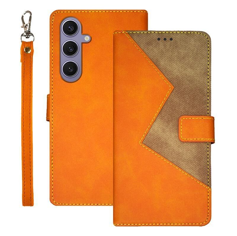 Θήκη τηλεφώνου δερμάτινη διχρωμίας για Samsung Galaxy S25+ 5G idewei (Πορτοκαλί) (Πορτοκαλί)