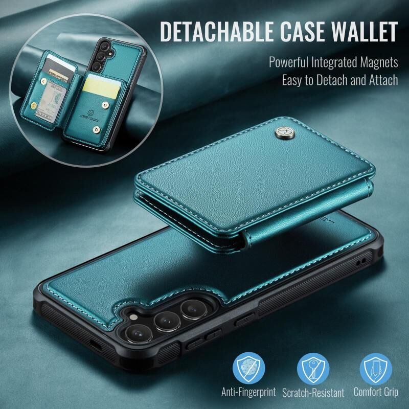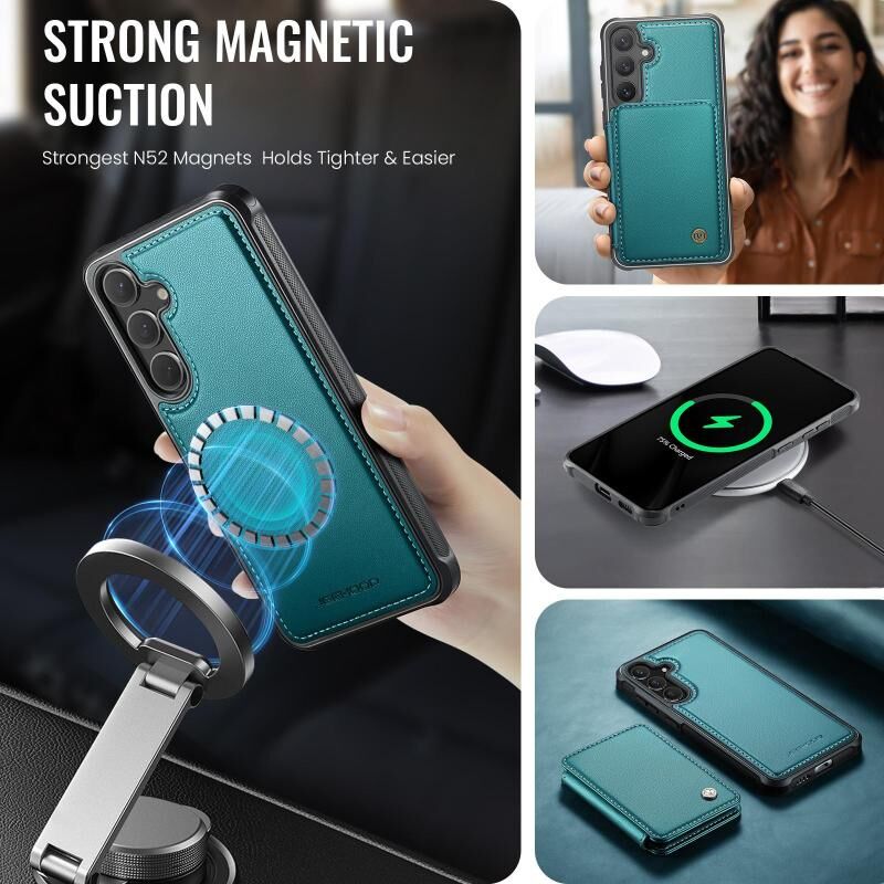 Θήκη τηλεφώνου JEEHOOD J05 από δέρμα με μαγνητικό στυλ και προστασία RFID για Samsung Galaxy S25+ 5G (Μαύρο) (Μπλε πράσινο)
