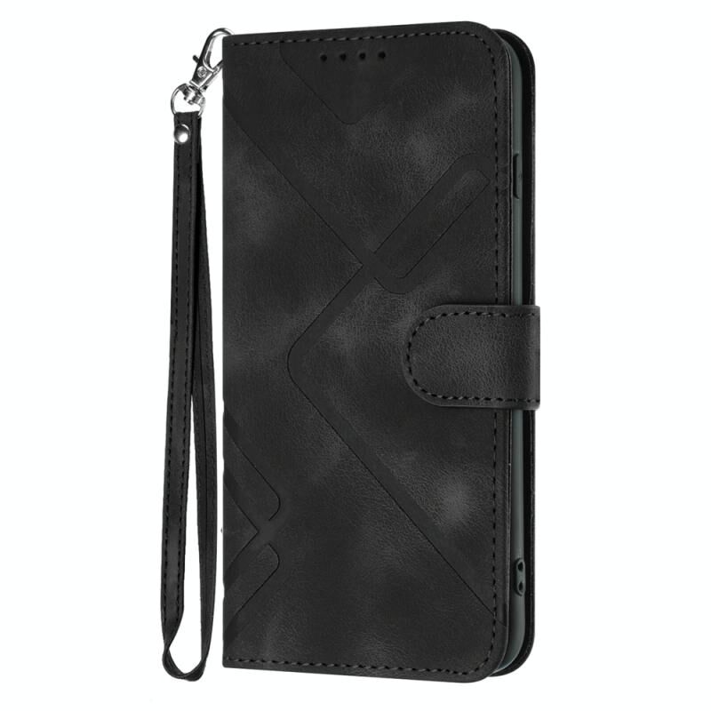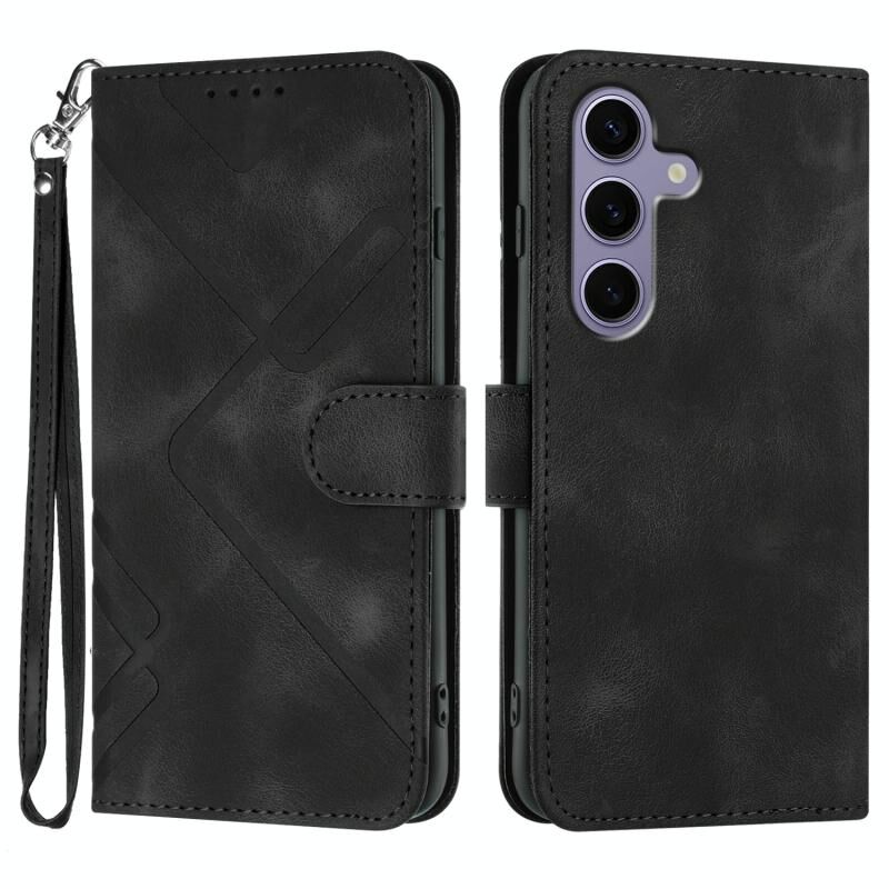 Για Samsung Galaxy S25 5G Γραμμή μοτίβο δέρμα αίσθηση δέρμα τηλέφωνο υπόθεση (μαύρο)