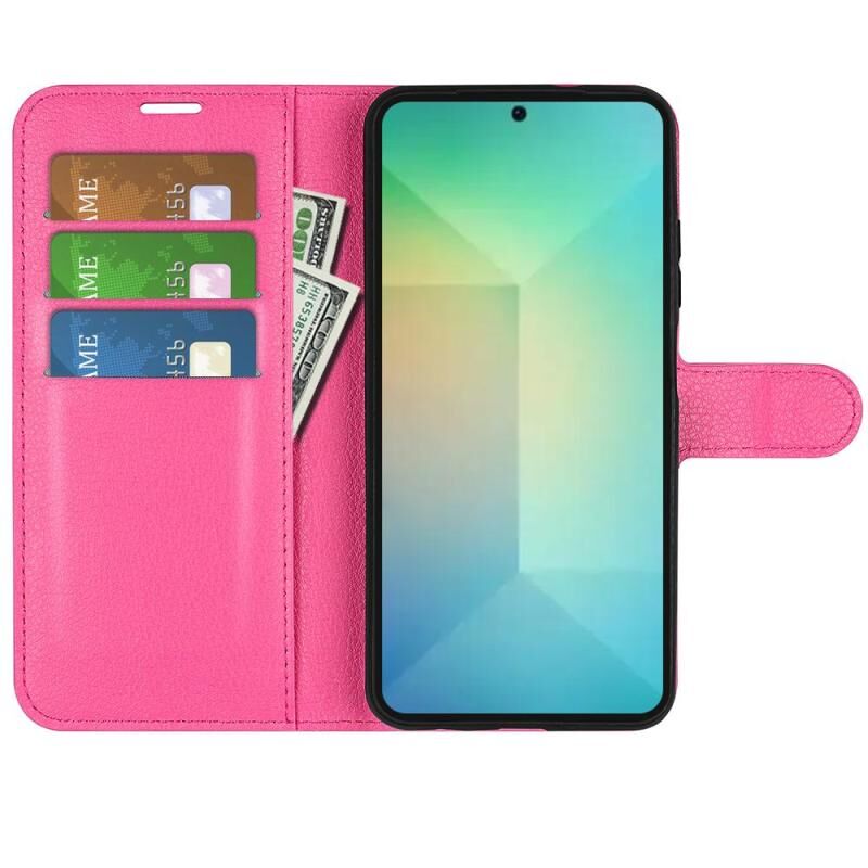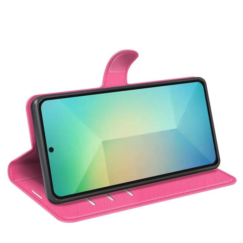 Θήκη τηλεφώνου Samsung Galaxy S25 5G από δέρμα με οριζόντιο άνοιγμα και υφή λυτσί, με βάση στήριξης (Κόκκινο του Ρόδου)