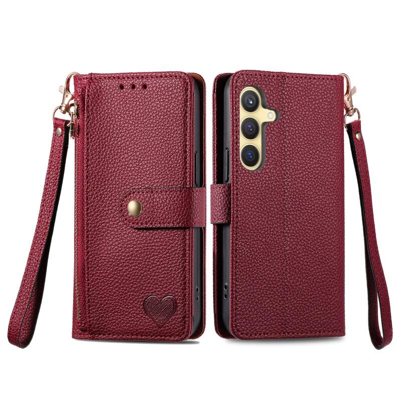 Για Samsung Galaxy S25+ 5G αγάπη φερμουάρ Lanyard δερμάτινη θήκη τηλεφώνου (κόκκινο)