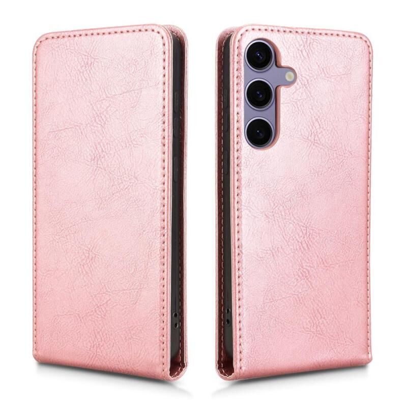 For Samsung Galaxy S25 5G Magnetic Vertical Flip Leather Phone Case(Rose Gold)
