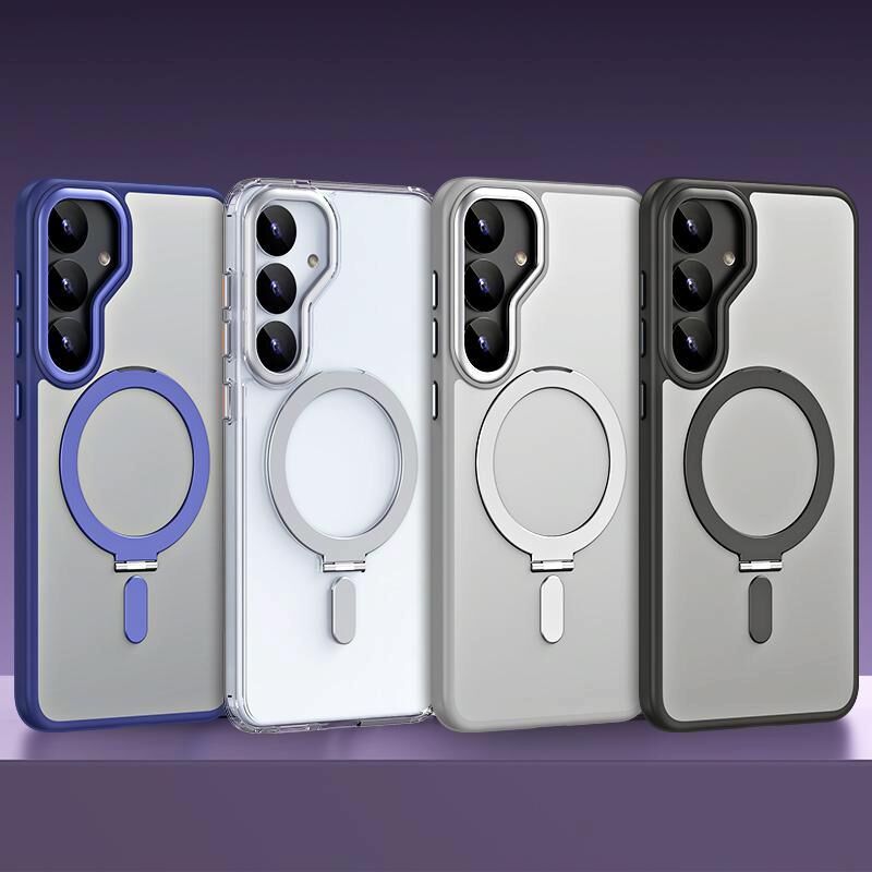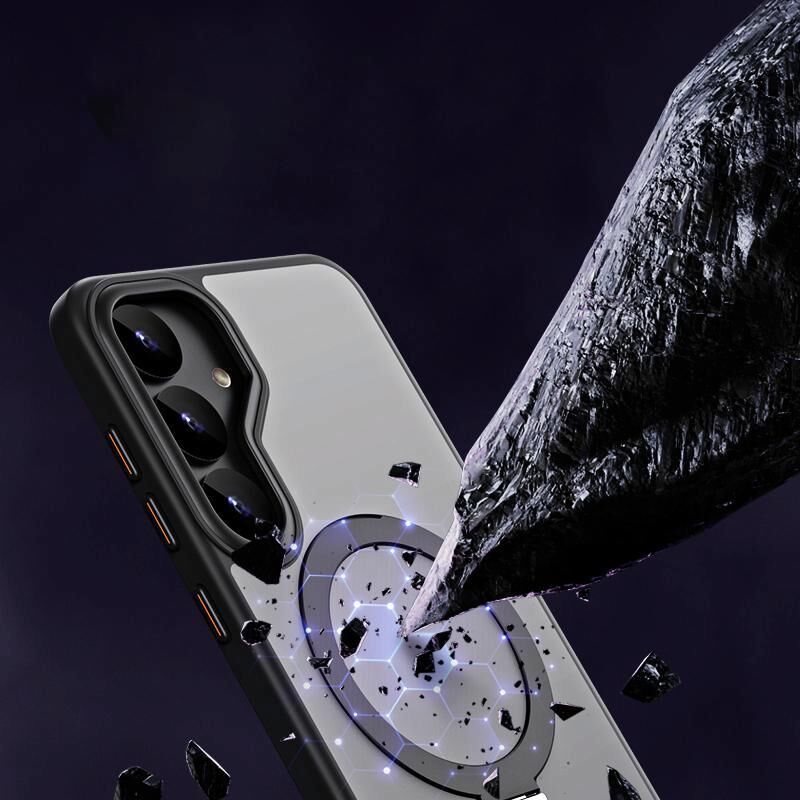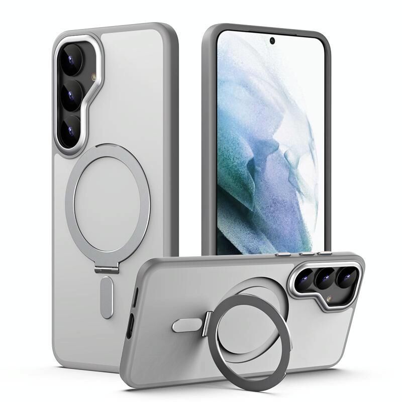 Θήκη τηλεφώνου με αερόσακο αντικραδασμική, παγωμένη υφή για Samsung Galaxy S25+ 5G MagSafe με πτυσσόμενη βάση (Γκρι)