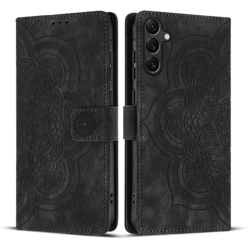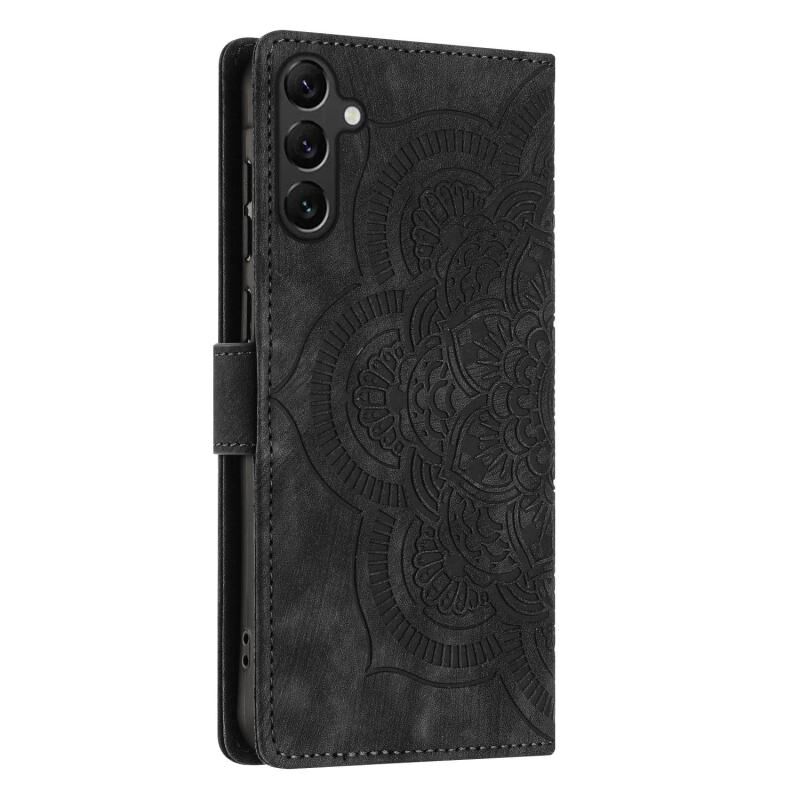 For Samsung Galaxy S25 5G Mandala Embossed Retro Frosted Leather Phone Case(Black)