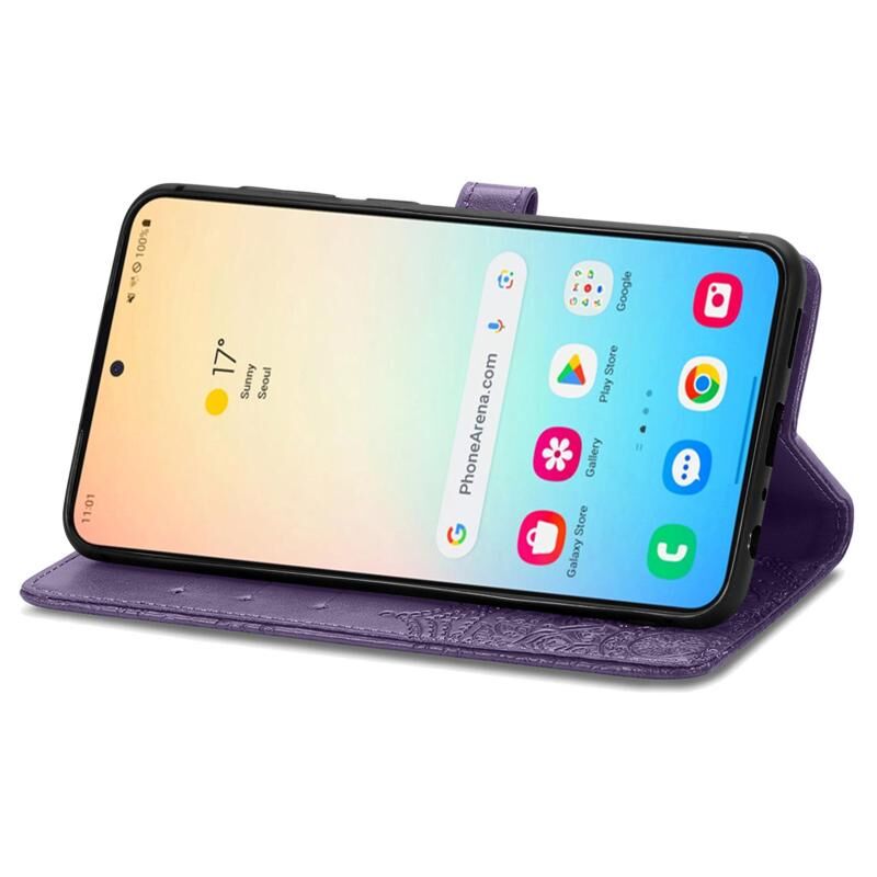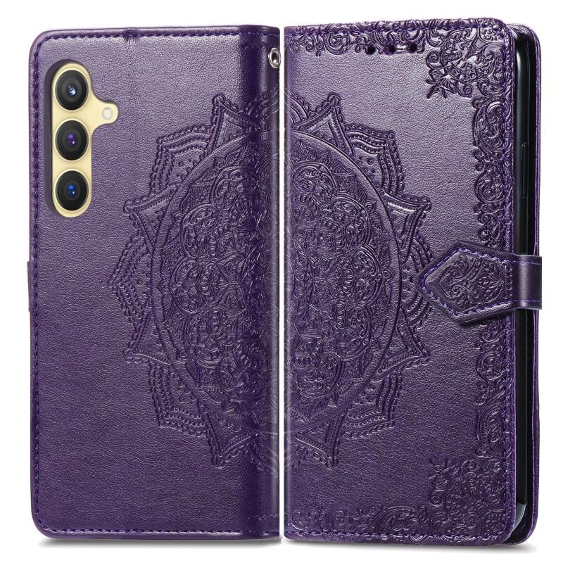 Για Samsung Galaxy S25 5G Mandala λουλούδι ανάγλυφο δερμάτινη θήκη τηλεφώνου (μωβ)