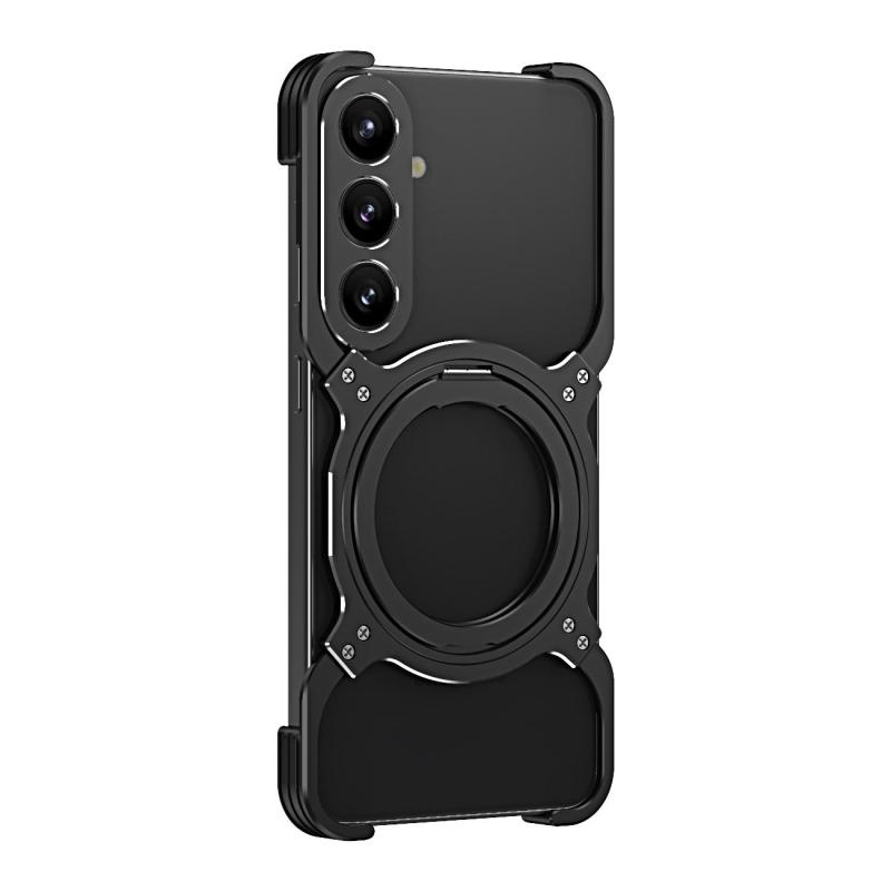 For Samsung Galaxy S25 5G Mechanical Arm Borderless MagSafe Holder Metal Phone Case(Black Silver)