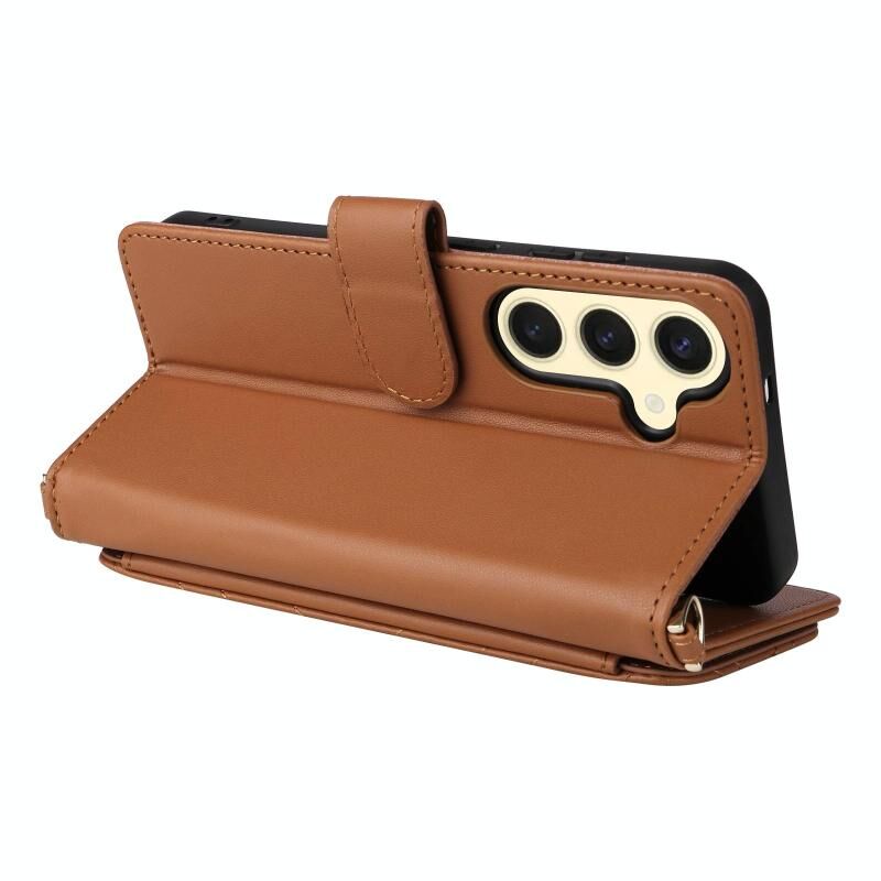 For Samsung Galaxy S25 5G Multifunctional 6-Card Slots Leather Phone Case with Wrist Strap(Brown)