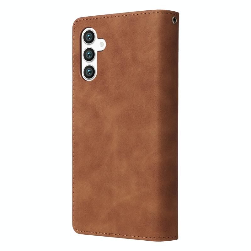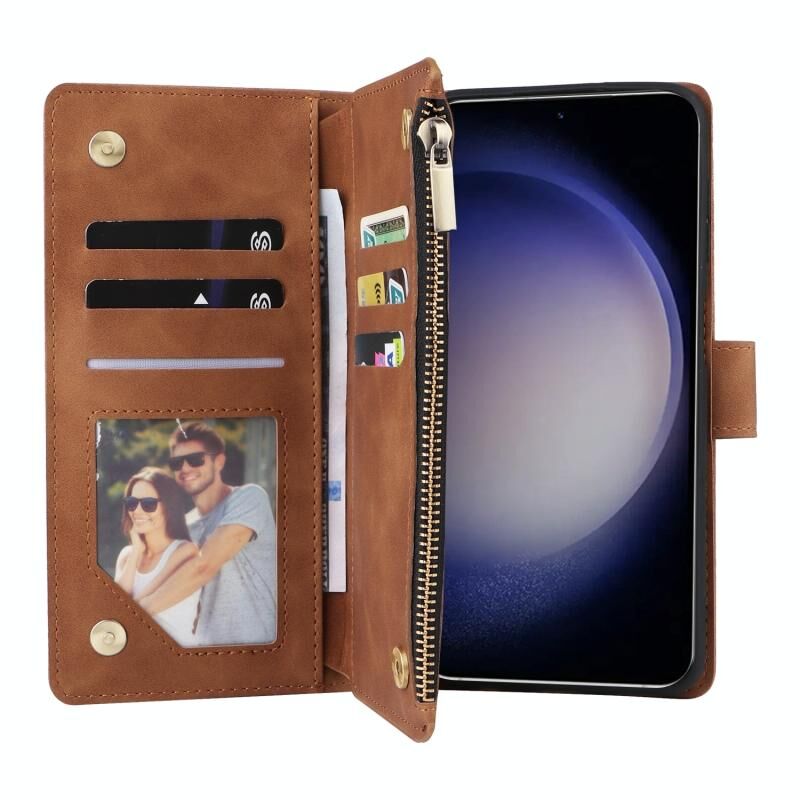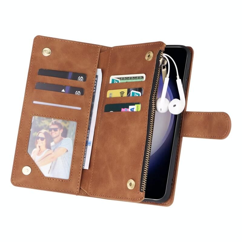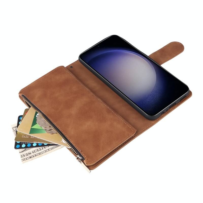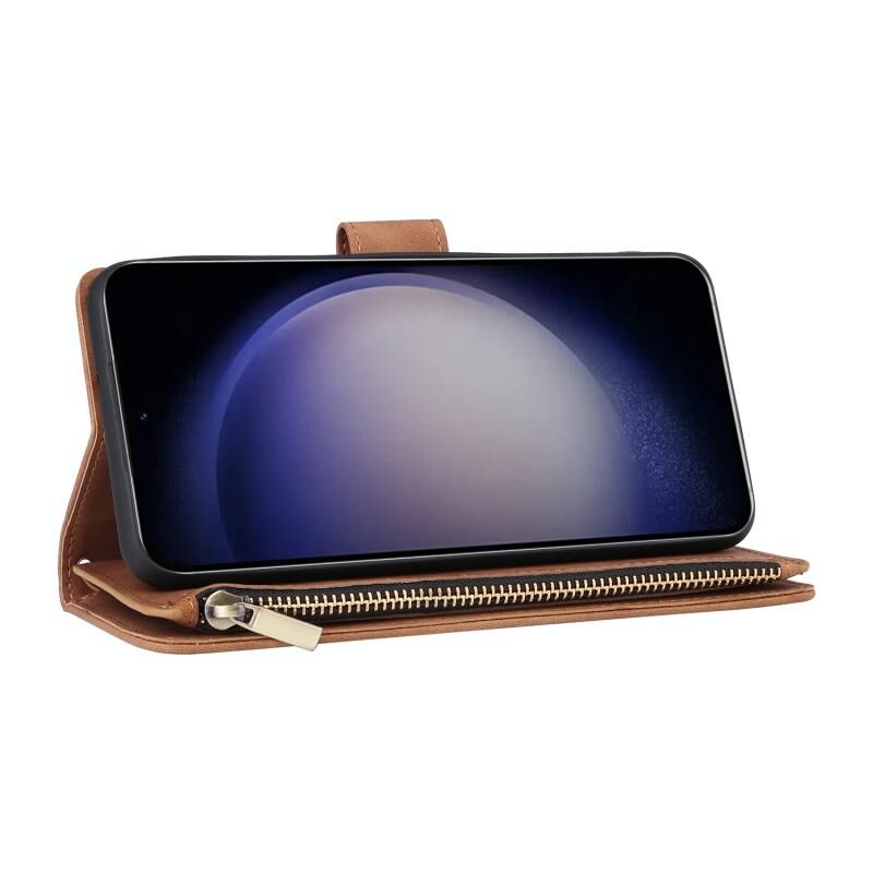 Για Samsung Galaxy S25 5G Πολυλειτουργικό παγωμένο φερμουάρ πορτοφόλι δερμάτινη θήκη τηλεφώνου (καφέ)