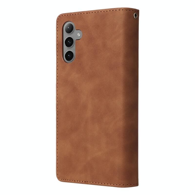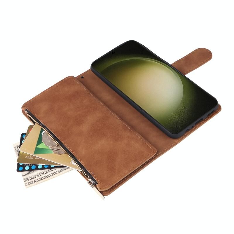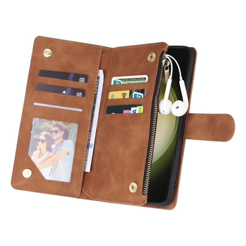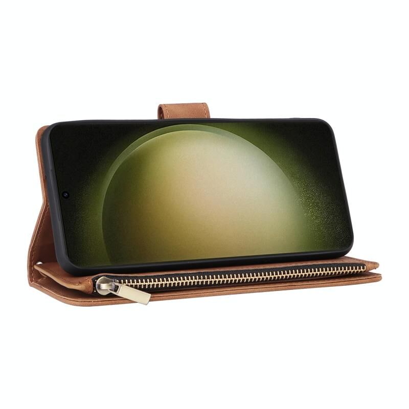 Για Samsung Galaxy S25+ 5G Πολυλειτουργικό παγωμένο φερμουάρ πορτοφόλι δερμάτινη θήκη τηλεφώνου (καφέ)
