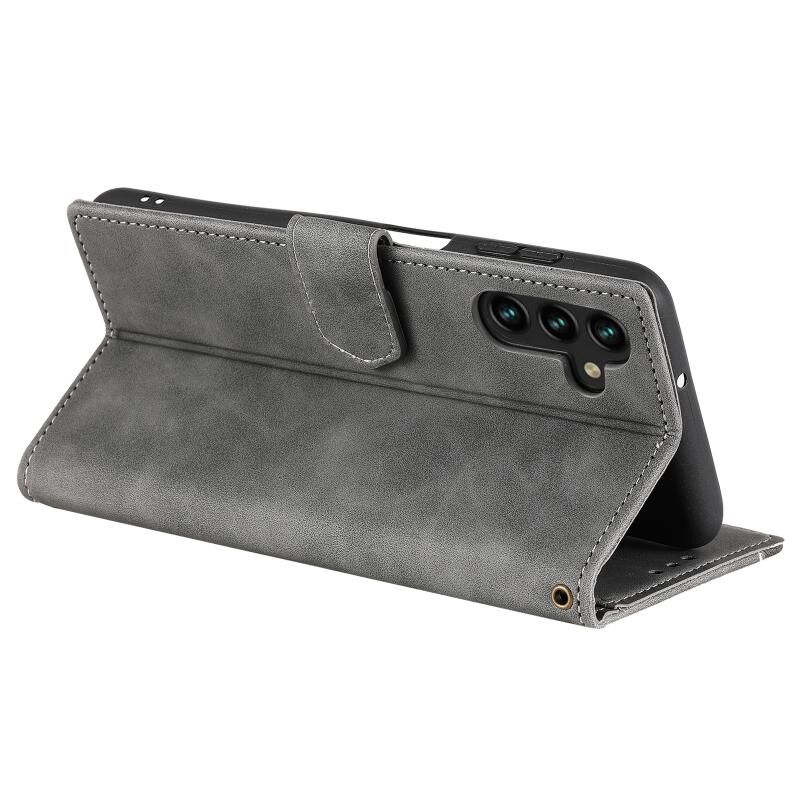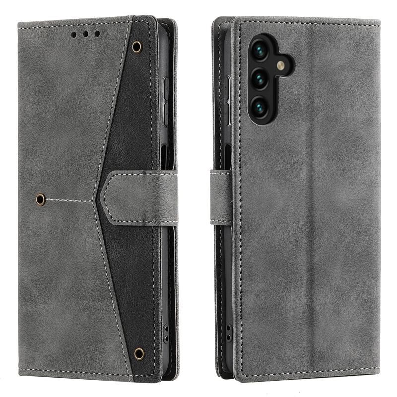 Για Samsung Galaxy S25+ 5G Nail Skin Feel Stitching Calf Texture Leather Phone Case (Γκρι)