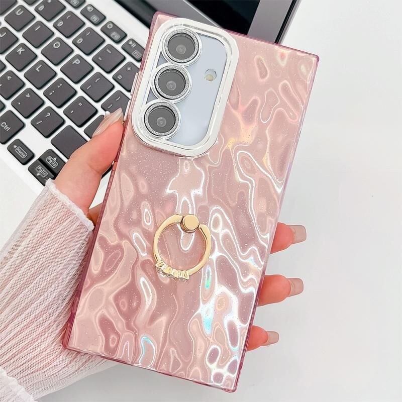 Για Samsung Galaxy S25 + 5G επιμετάλλωση Glitter υφή δαχτυλίδι κάτοχος TPU τηλέφωνο υπόθεση με φακό ταινία (Ροζ Ρυτίδες)