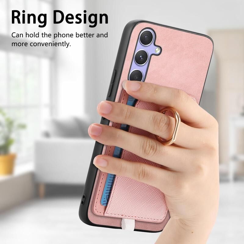 Θήκη τηλεφώνου Samsung Galaxy S25 5G Retro Cross από δέρμα με ενσωματωμένη δακτύλιο και θήκη καρτών στο πλάι, συμβατή με MagSafe (Μπλε)